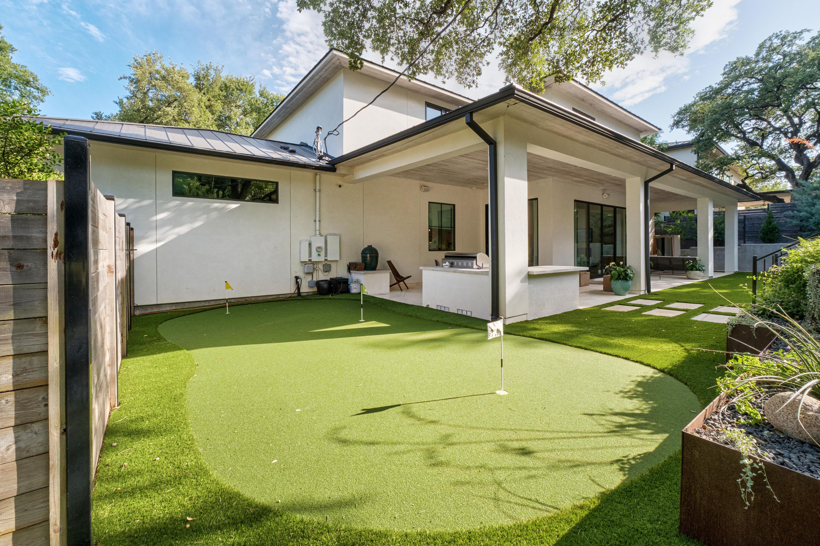 The backyard is an entertainer’s dream, complete with an outdoor kitchen, heated, oversized pool (9 ft depth + diving board) designed & built by Modern Pools, and putting green—perfect for both laid-back evenings and vibrant gatherings. A spacious 3-car garage, meticulous design details, and premium finishes throughout make this residence truly one-of-a-kind.